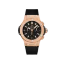 This 44 mm timepiece is crafted from 18k rose gold, combining brushed and polished finishes for a refined yet bold appearance. The fixed rose-gold bezel is accented with Hublot’s signature titanium “H” screws, reinforcing its instantly recognizable design identity.