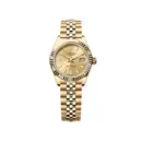 The Rolex Lady‑Datejust 28 Ref. 279178‑0003 epitomizes timeless elegance for women. Crafted entirely in 18 ct yellow gold, including the fluted bezel and Jubilee bracelet, this watch exudes refined luxury. The champagne-colour sunray dial, matched with 18 ct yellow gold hands and hour markers with luminous fill, delivers both clarity and sophistication. Protected by scratch-resistant sapphire crystal with a Cyclops magnifier at 3 o’clock, the date display is effortlessly readable.
